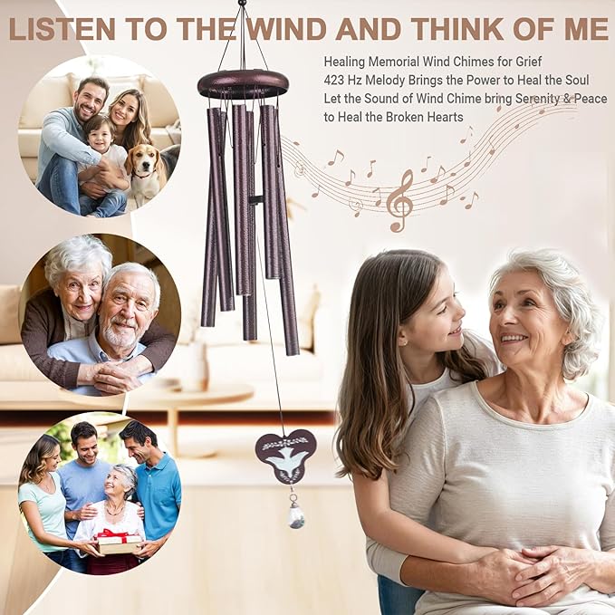 - 【Soothing Melody to Heal ,Love&Missing】The wind chimes will express our most sincere love and miss for loss of loved one.These natural soothing sound will bring all the fond memories to remind that those they love are still around.Wind chimes have a soothing and pure tone, playing relaxing and beautiful sound on the whims of the wind. When listening to it, tension and anxiety can be relieved, peace of mind will be regained, warm memories will be recalled to help fight over any loss or setback
