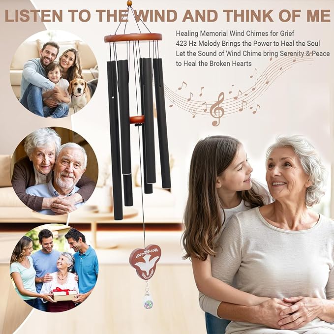 - 【Memorial Gifts】Sympathy wind chimes is packed in beautifully carton box and also comes in a matching poem card enclosed to write down your personal condolences and blessings.windchimes in memory of a loved one can last for years and better than flowers ,and is a Ideal and unique gifts for comfort someone mourning the loss of mother/father/grandmother/grandfather/sister /brother, friend, cousin, aunt/uncle or even neighbors