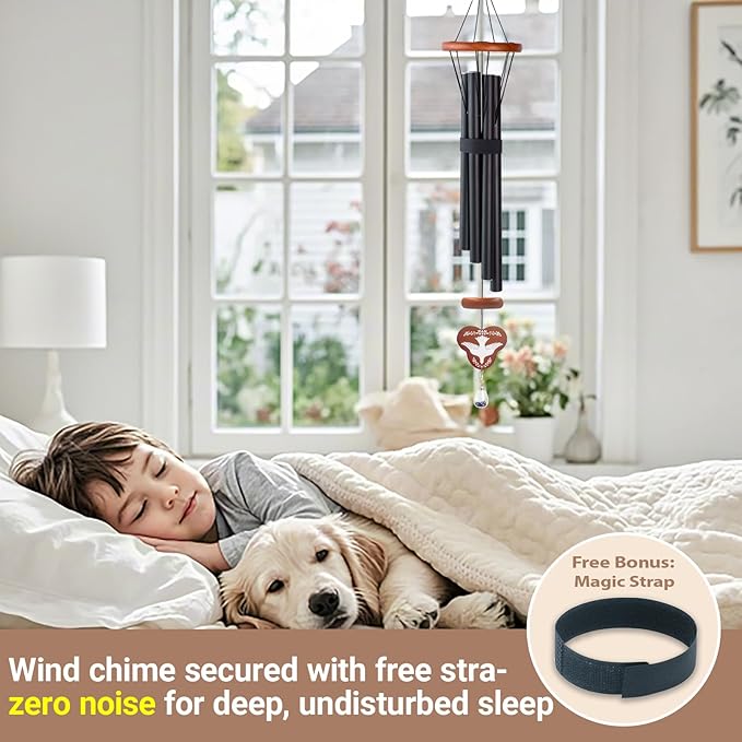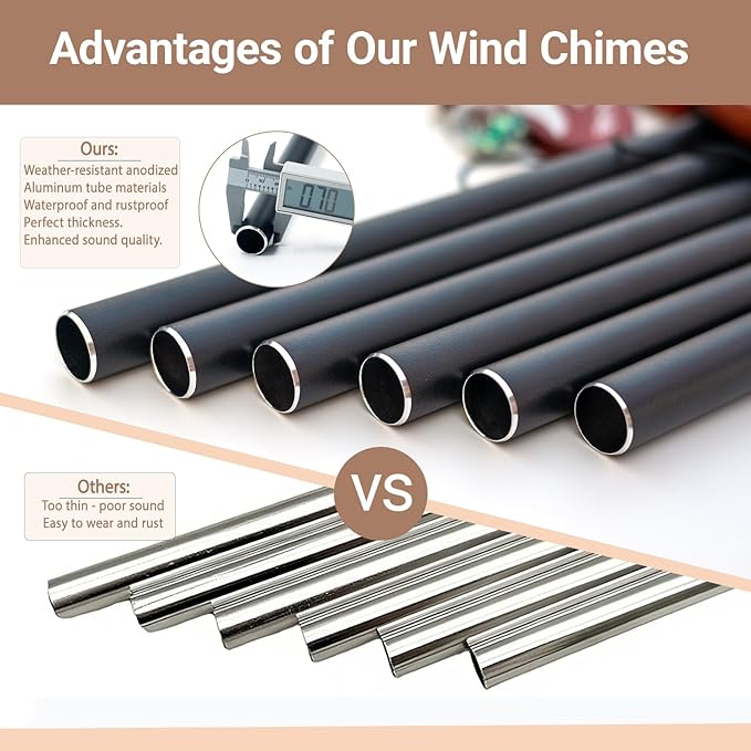 - 【Better Gifts than a flower】 Flowers fade, but sympathy wind chimes are built to last.Crafted with 6 anodized black aluminum tubes, features quality pendants, and sturdy nylon Braided Ropes. which is durable, waterproof and weather resistant.35''memorial wind chimes is perfect decoration for hanging in the garden, patio, porch, backyard and other decorative areas. It is an unique addition to your outdoor activities, and the soothing sound of the wind chime will bring long-lost relaxation
