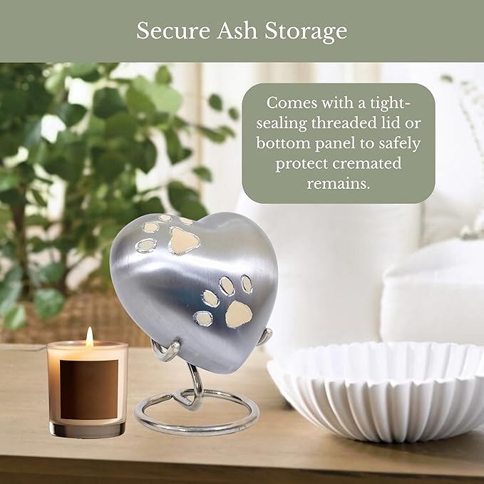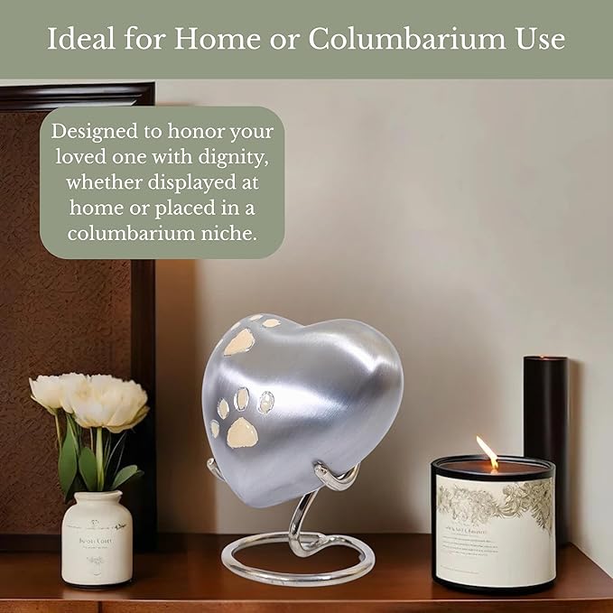 - SYMBOL OF LOVE & PEACE – A symbolic heart shaped pet urn with paw print detail, representing eternal love, loyalty, and peace. This pet memorial urn provides families with a heartfelt way to honor their beloved dog or cat with elegance and dignity.