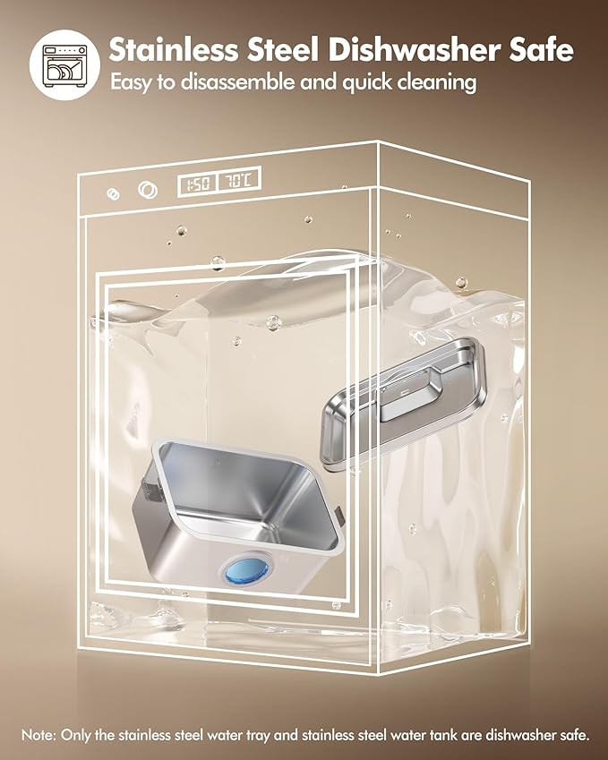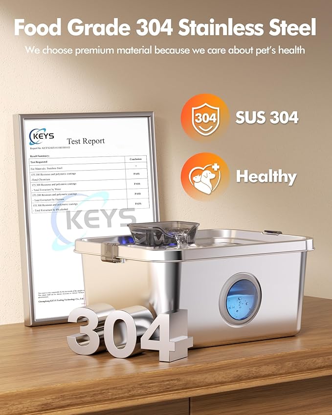 - Premium Stainless Steel Material - Pet water fountain made of premium food-grade 304 stainless steel, easy to clean and quick to disassemble. For convenience, it is also dishwasher safe. Compared to plastic, stainless steel helps prevent common issues like pet chin acne, ensuring a safer and more hygienic drinking experience for your pets Note: The filter screen and water pump cannot be washed in a dishwasher