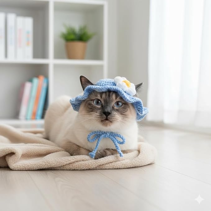 Cat Part Hat with Ear Holes and Adjustable tie, Soft Polyester, Washable| Cute Flower Party Hat for Cats,BlueM,4–16 lbs, Holiday & Photo Outfit
