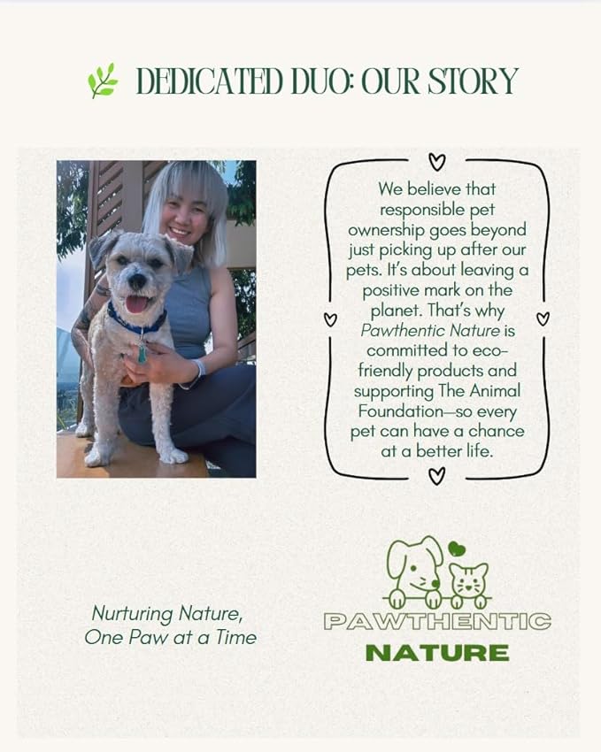 - ❤ PURCHASE WITH PURPOSE – WE SUPPORT PET RESCUES: PAWTHENTIC NATURE is a small pet-loving business with a big heart. Every purchase helps us donate to The Animal Foundation’s rescue & adoption programs, so you’re not only cleaning up after your pet, but you’re also helping save another. Join us in making a pawsitive impact – for your pet, for shelter animals, and for the planet.