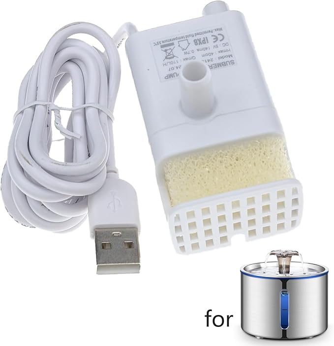Replacement Pump for Cat Water Fountain Dog Water Dispenser Ultra Quiet Long Lifespan Water Pump, LED Lights