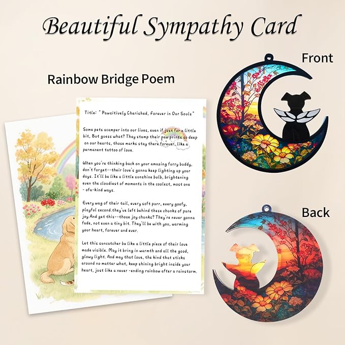 - 2-in-1 Remembrance Set: Includes a beautiful window suncatcher for your home and a portable keychain, so you can keep your petâs memory close whether indoors or on the go.