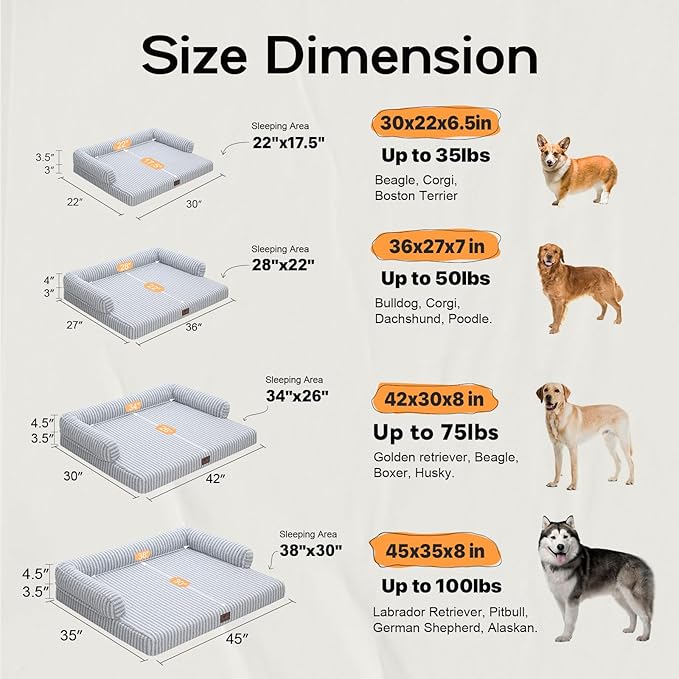 • Size Guide: Mekiy dog bedslarge sized bed (30x22x6.5 inches) is suitable for dogs weighing less than 37 lbs; for dogs that enjoy rolling around or need extra space; sizing up will provide greater comfort