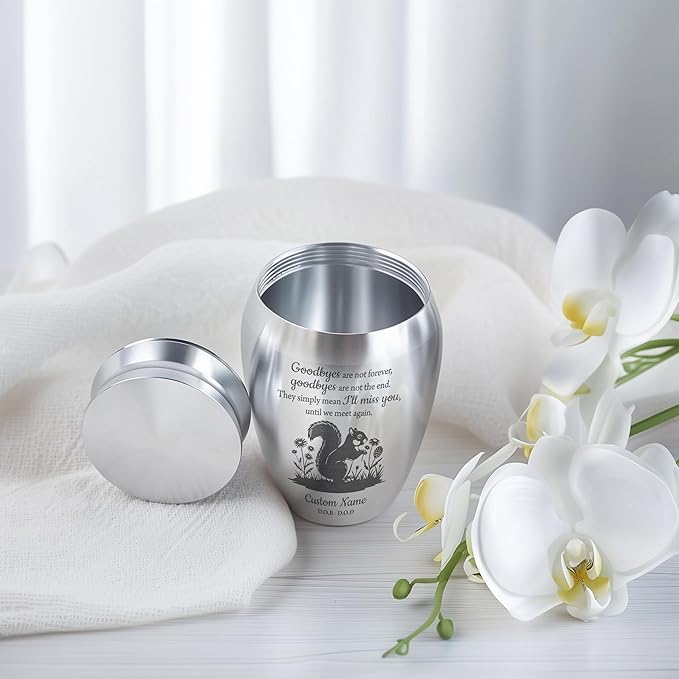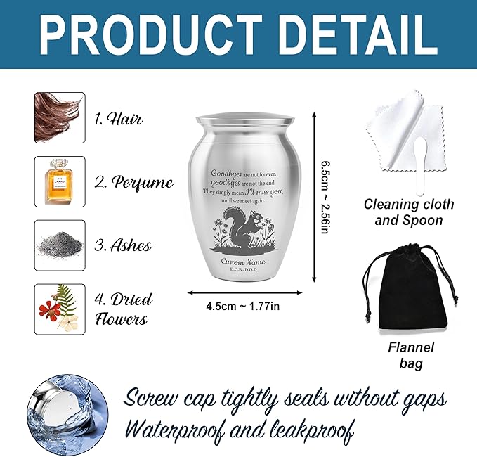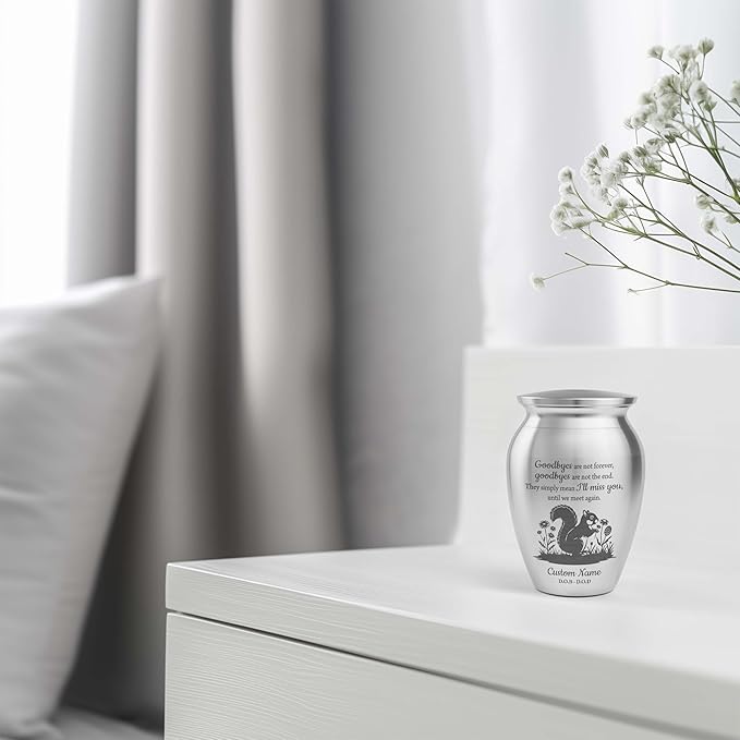 - SENTIMENTAL KEEPSAKE: The Squirrel Memorial Mini Urn serves as a meaningful memento that family members can keep to remember and pay tribute to the squirrel lovers.