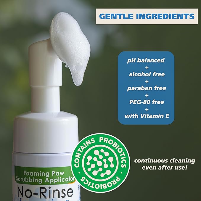 - Safe, Soothing & Moisturizing - Formulated with your pet’s health in mind, this dog paw washer is lick- safe with a pH-balanced formula that is alcohol, paraben, and PEG-80 free. Enriched with Vitamin E, Aloe Vera, Lanolin, Oatmeal, and Glycerin, it hydrates and nourishes paw pads for long-lasting comfort.