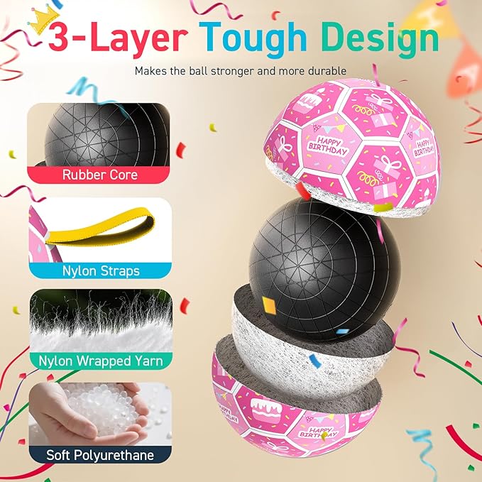QDAN Dog Birthday Toys, Squeaky Dogs Toys, Dog Soccer Ball with Straps, Puppy Gifts, Herding Balls with Bell Inside, Water Toy, Durable Ropes Ball for Medium Large Dogs (8 inch)