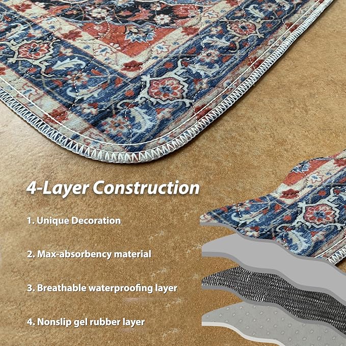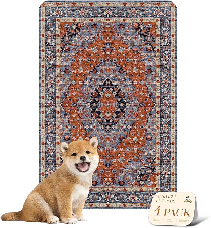 nunubaby 4PACK Washable Pee Pads for Dogs, Stylish, Non-Slip and Leak-Proof Pee Pads. Reusable Potty Pads for Dogs for Crates and Floors.(Red/Floral, 24" x36")