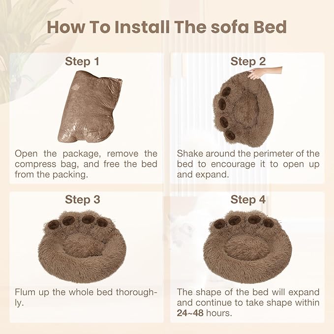Calming Dog Bed Cat Bed Medium Size Dog - Donut Washable Medium Pet Bed, Warm Kitten Nest 24 inches Anti-Slip Round Fluffy Plush Faux Fur Cat Bed, Fits up to 25 lbs Pets, (Classic Camel)