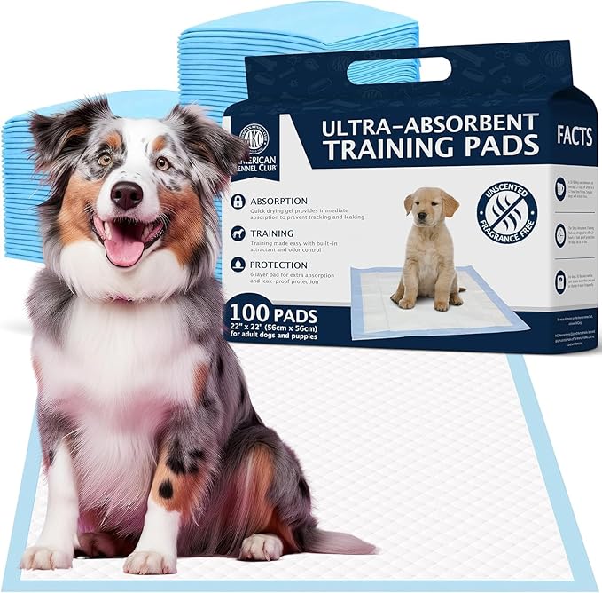 American Kennel Club Puppy Training Pads with Ultra Absorbent Quick Dry Gel – 22 x 22 Pee Pads for Dogs - 100 Count (Unscented)