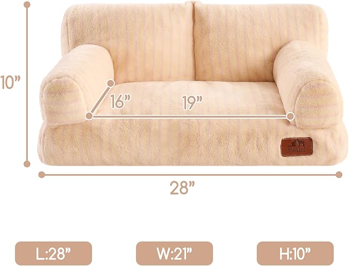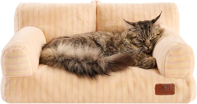 Hollypet Fluffy Plush Pet Cat Couch Soft Calming Pet Sofa Beds for Medium Small Cats and Dogs, Pink Stripes