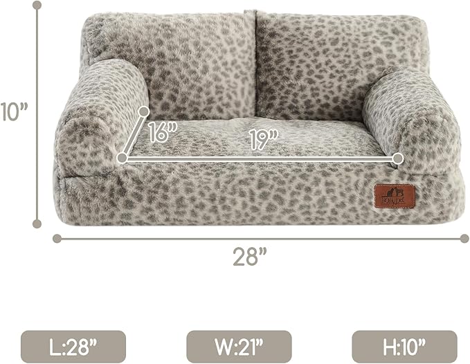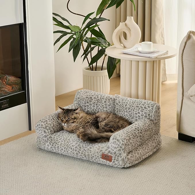 Hollypet Fluffy Plush Pet Cat Couch Soft Calming Pet Sofa Beds for Medium Small Cats and Dogs, Snow Leopard