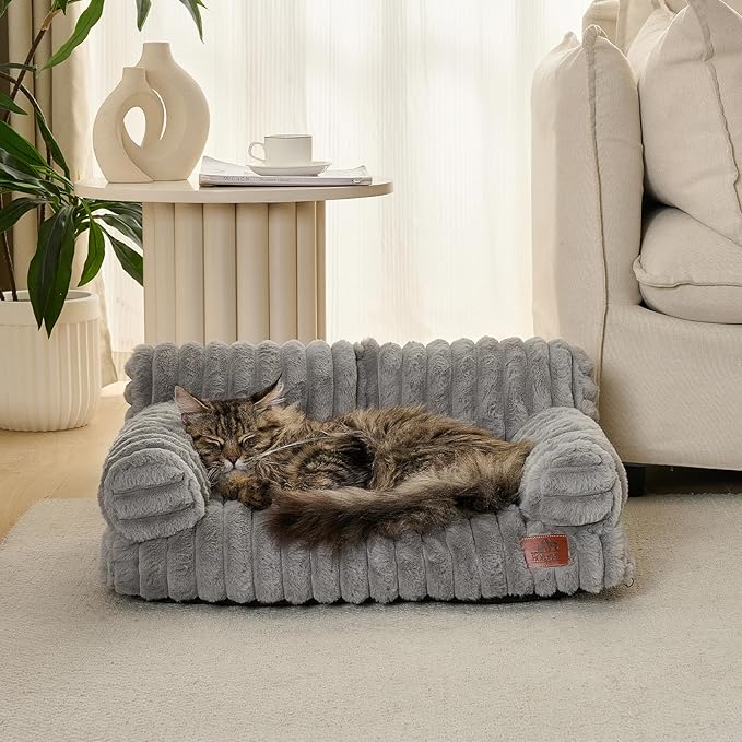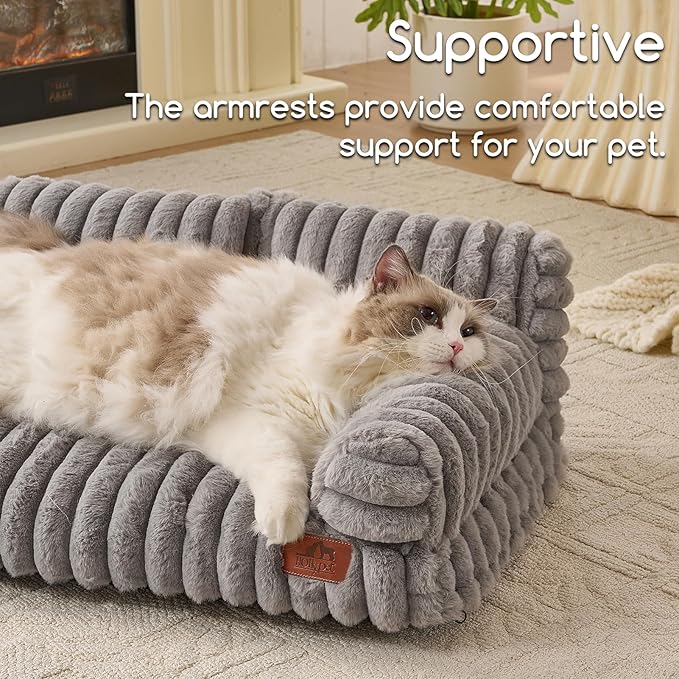 Hollypet Fluffy Plush Pet Cat Couch Soft Calming Pet Sofa Beds for Medium Small Cats and Dogs, Dark Gray