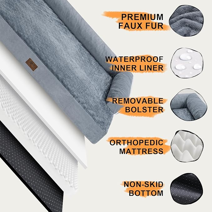 Dog Bed Large Sized Dogs-Orthopedic Waterproof Bed for Dogs,Large Dog Beds with Washable Removable Cover & Non-Slip Bottom