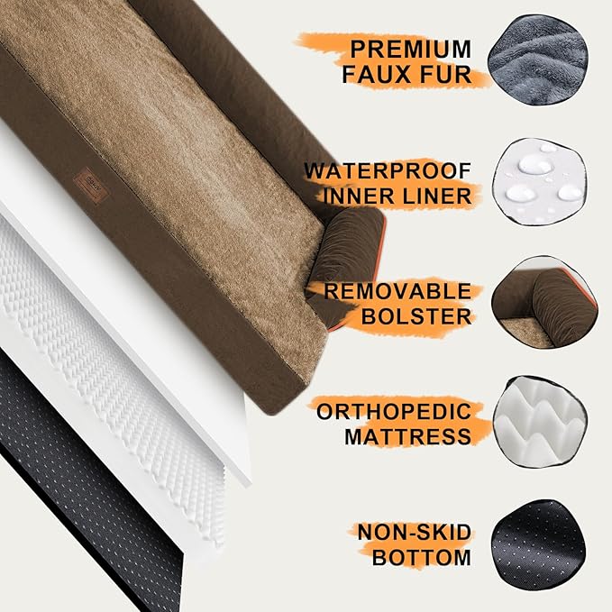 Dog Bed Large Sized Dogs-Orthopedic Waterproof Bed for Dogs,Large Dog Beds with Washable Removable Cover & Non-Slip Bottom