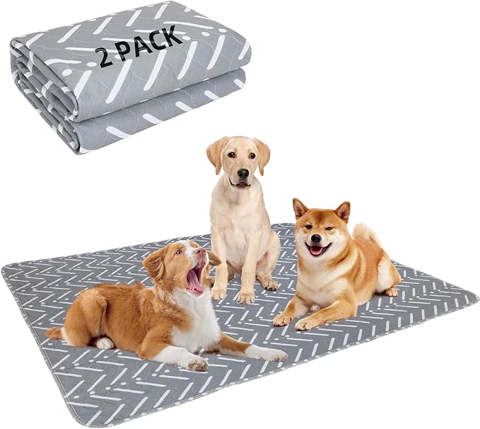 PUPTECK Reusable Dog Pee Pads, 2 Pack Non-Slip Washable Waterproof, Fast Absorbing Puppy Pads Whelping Mat, for Couch, Crate, Potty Training 48" x 60"