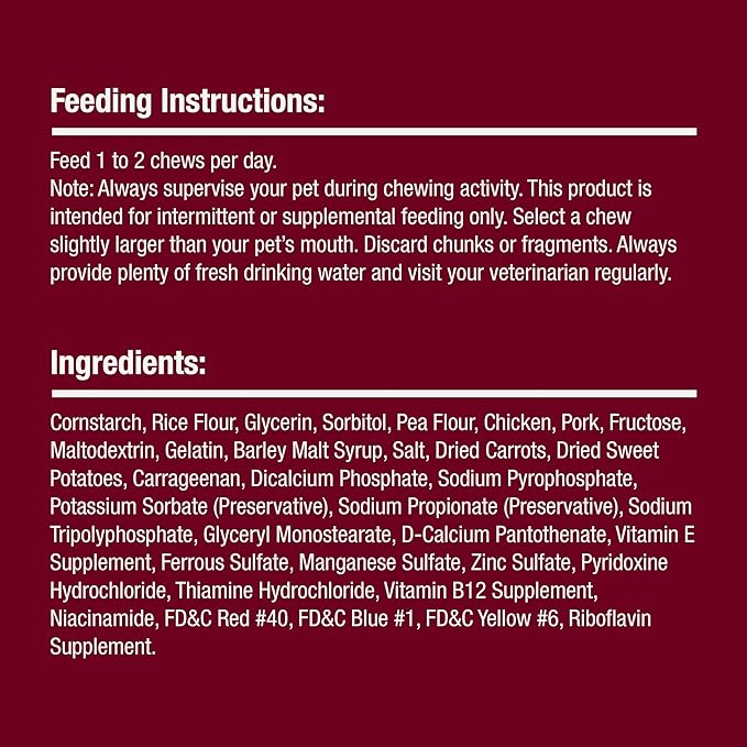 About This RAWHIDE-FREE CHEWS: Easy-to-digest chews contain no rawhide or pork hide STUFFED TWIST STICKS: Chicken and vegetable chews with... Read more