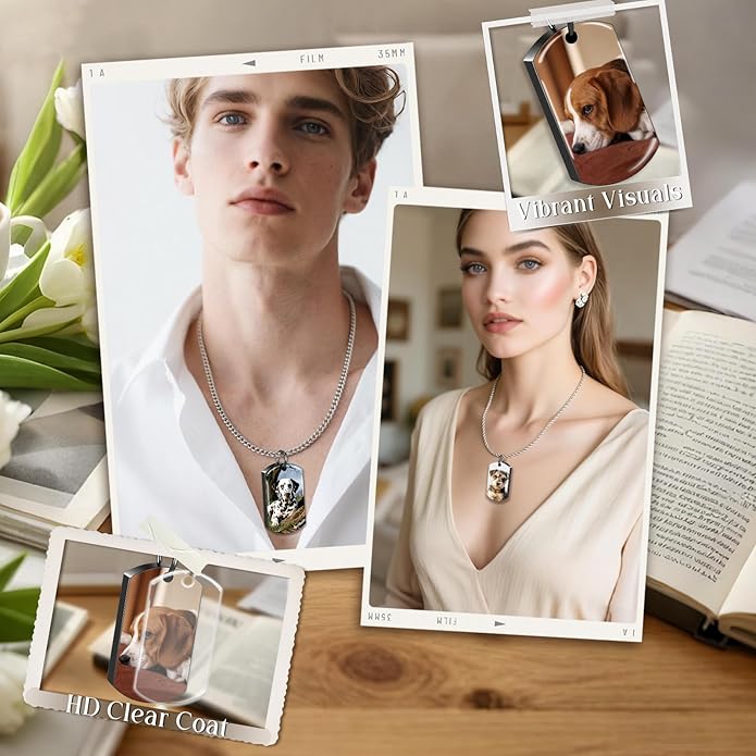 • 【Excellent Material】: This custom necklace is made of quality stainless steel. The image is printed using UV printing technology, and the colors are more vivid. The text and icons on the back are laser engraved, which is detailed and clear