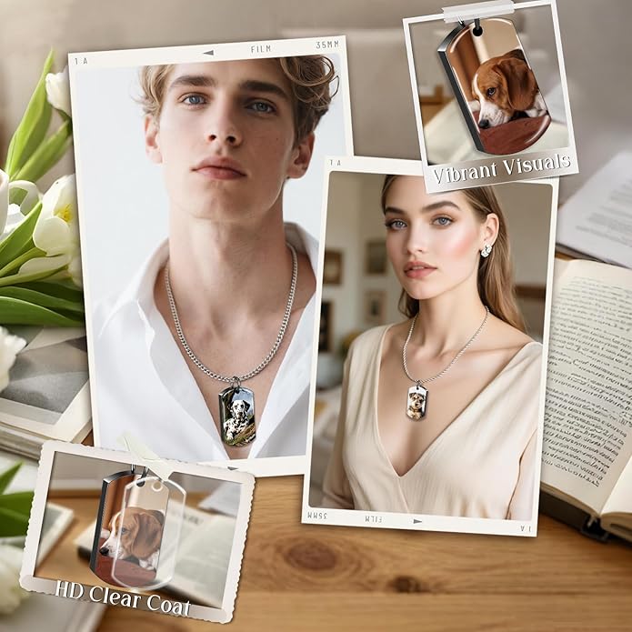 - 【Personalized photo necklace】: Click "Customize Now" to start customizing your photo necklace, upload the front picture, add text and favorite icons on the back, and record the most realistic appearance of your pet in your impression