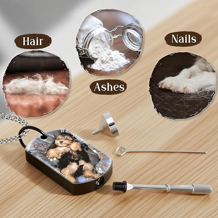 - 【New Upgrade】: A high-definition transparent coating is added to the image to effectively protect the photo. The necklace comes with tools to easily store a part of your deceased pet, so that the pet's love will always be with you