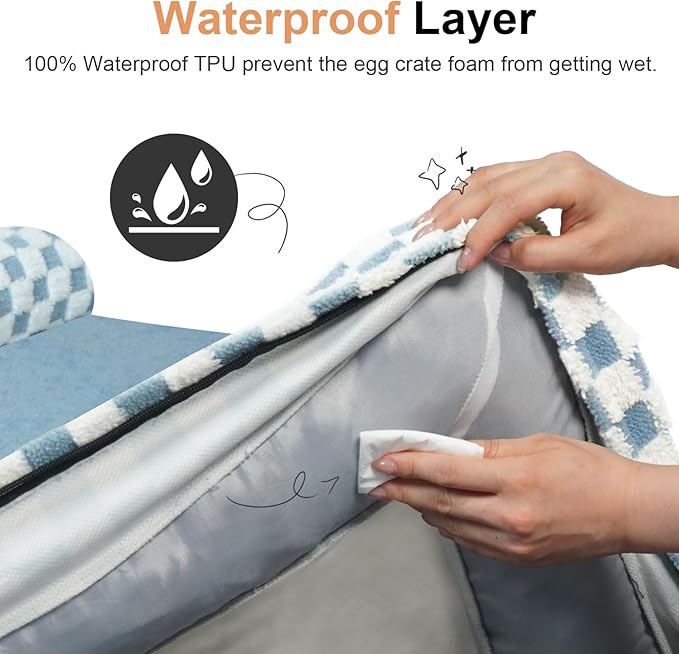 Large Dog Bed Orthopedic Washable: Beds Bolster XL Bed Big XLarge Dogs Egg Crate Foam Couch Sofa Waterproof with Removable Cover - Blue Grid