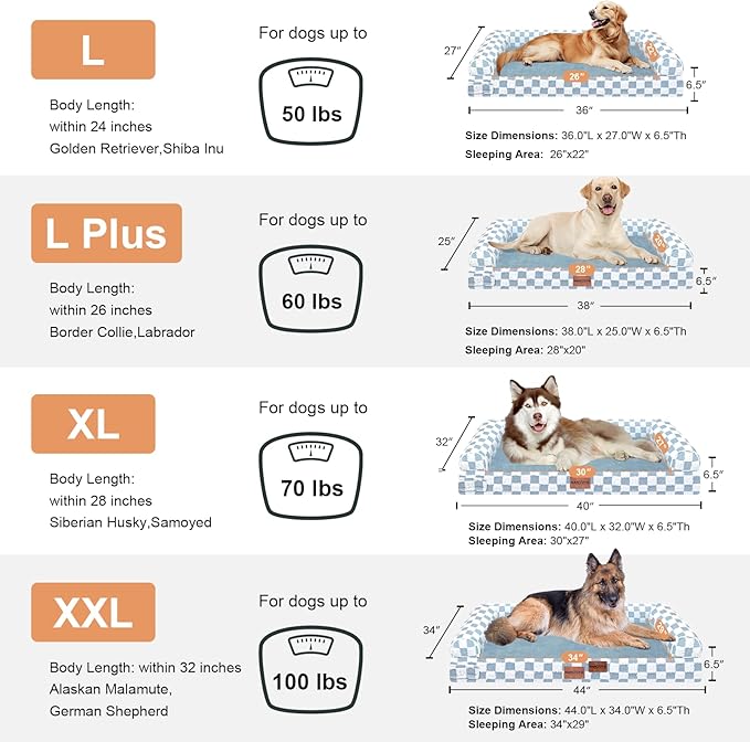 Large Dog Bed Orthopedic Washable: Beds Bolster XL Bed Large Big Dogs Egg Crate Foam Couch Sofa Waterproof with Removable Cover - Blue Grid