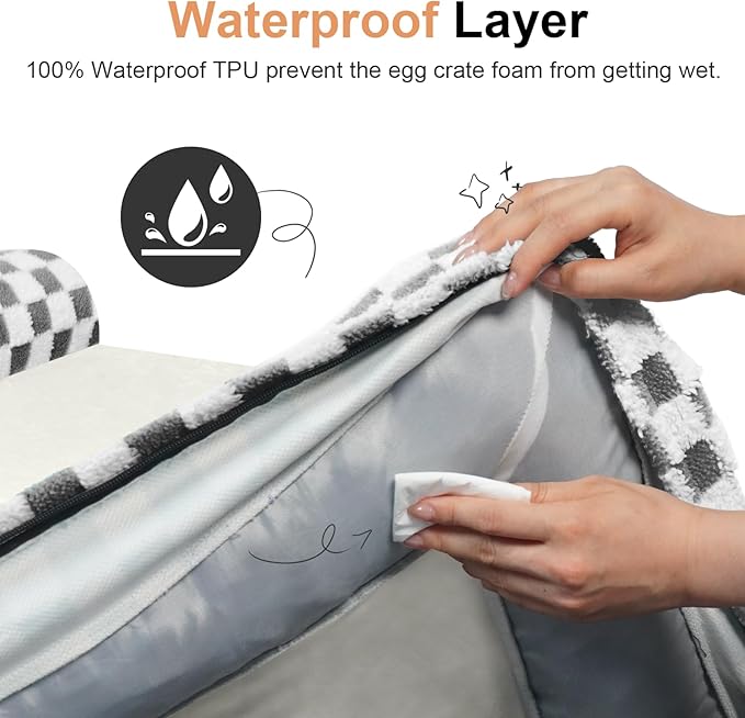 Large Dog Bed Orthopedic Washable: Beds Bolster XL Bed Large Big Dogs Egg Crate Foam Couch Sofa Waterproof with Removable Cover - Dark Grey Grid