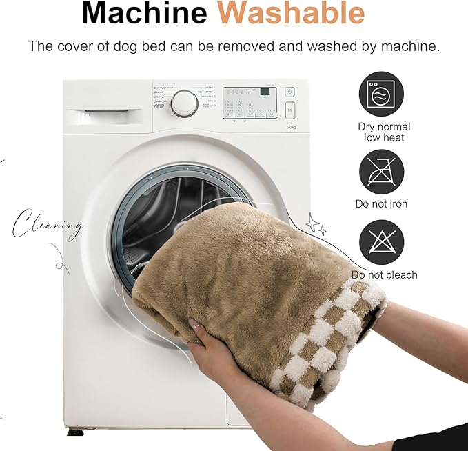 Large Dog Bed Orthopedic Washable: Beds Bolster XXL Bed Big XLarge Dogs Egg Crate Foam Sofa Couch Waterproof Removable Cover - Brown Grid
