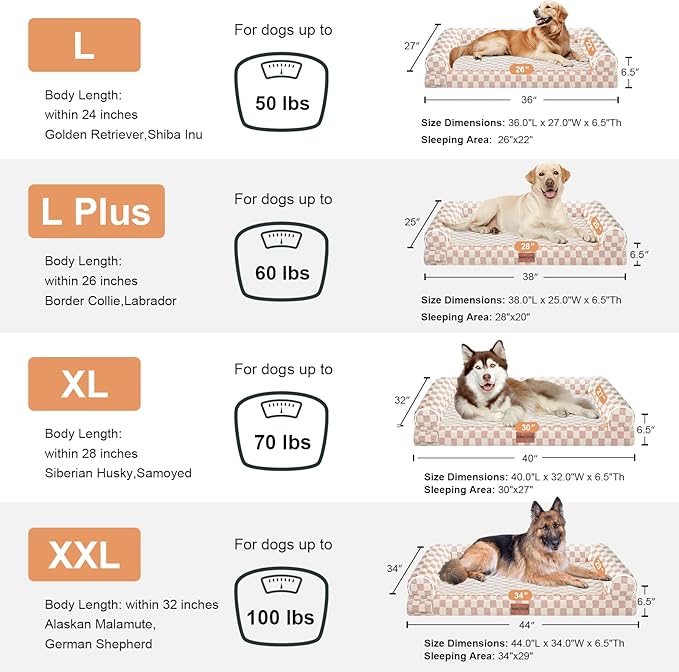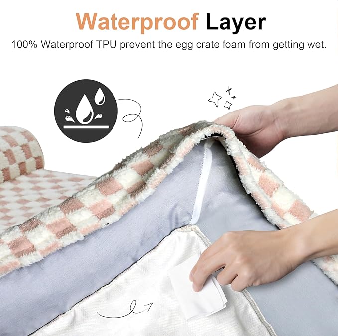 Large Dog Bed Orthopedic Washable: Beds Bolster XL Bed Big XLarge Dogs Egg Crate Foam Couch Sofa Waterproof with Removable Cover - Pink Grid