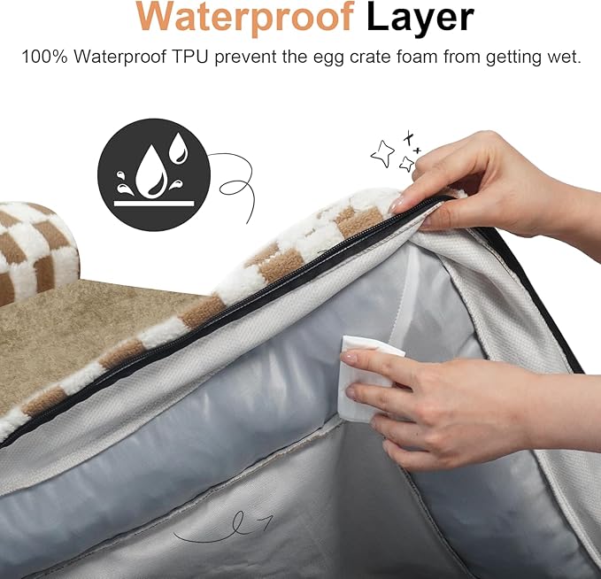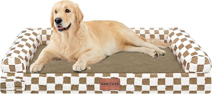 Large Dog Bed Orthopedic Washable: Beds Bolster XL Bed Medium Large Dogs Egg Crate Foam Couch Sofa Waterproof with Removable Cover - Brown Grid