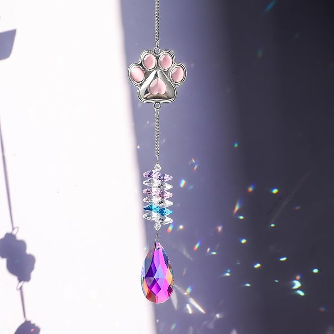 - High Quality Crystal SunCatcher:This suncatcher features a high-refractive K9 crystal pendant and high-quality metal design.The dog paw print and heart-shaped pendant symbolize your endless miss and deep love for your pet.The crystal is intricately cut and polished to create a stunning prism effect that radiates light and color in all directions.