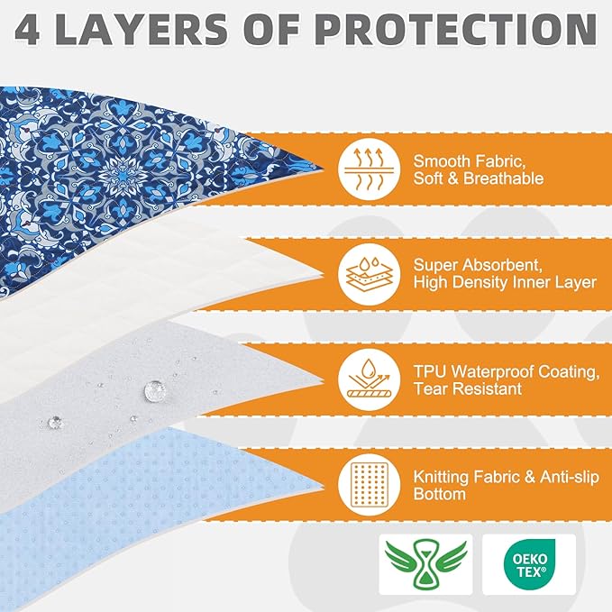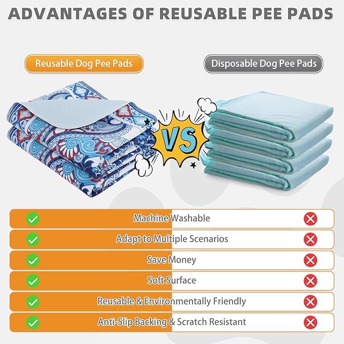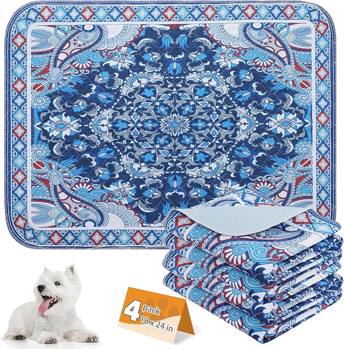 KOOLTAIL Washable Pee Pads for Dogs, 4 Pack Super Absorbent Reusable Puppy Training Pads Waterproof, Nonslip and Leak-Proof Dog Pee Pads, Large Pet Mats Whelping Pads for Floor, Crate, Couch 18"x24"