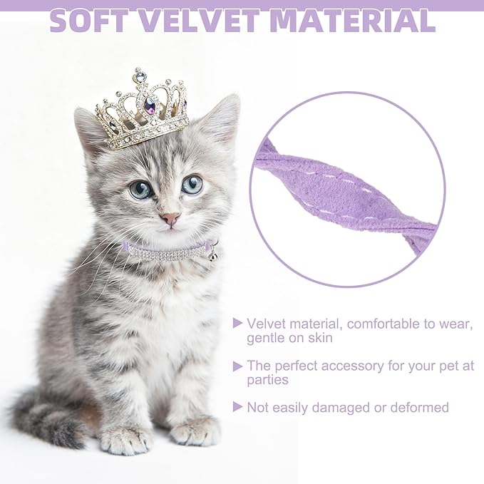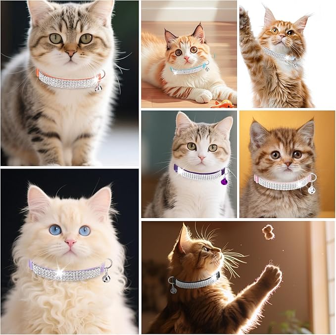 EXPAWLORER Soft Velvet Safe Cat Collars for Girl Cats - Rhinestones Bling Diamante Adjustable Collars Breakaway- Chirstmas Cat Clollar Gifts with Bells for Boy Cats Kitty and Small Dogs