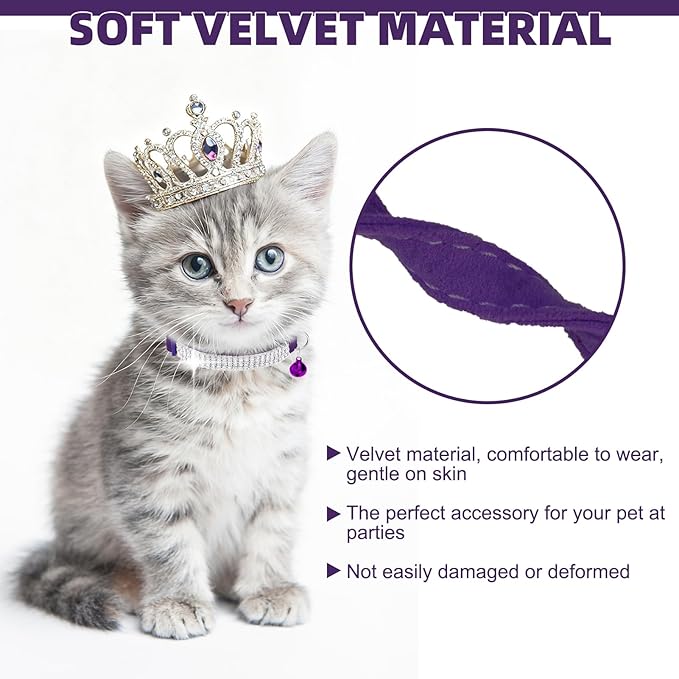 EXPAWLORER Soft Velvet Safe Cat Collars for Girl Cats - Rhinestones Bling Diamante Adjustable Collars Breakaway- Chirstmas Cat Clollar Gifts with Bells for Boy Cats Kitty and Small Dogs