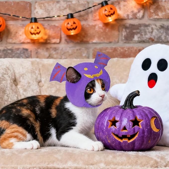 Cat Halloween Costumes Halloween Bat Wing Hat for Dogs Cats Adjustable Cute Purple Bat Cap Festival Pet Head Dress Up Accessories for Halloween Puppy Kitten Cosplay Costume Gifts