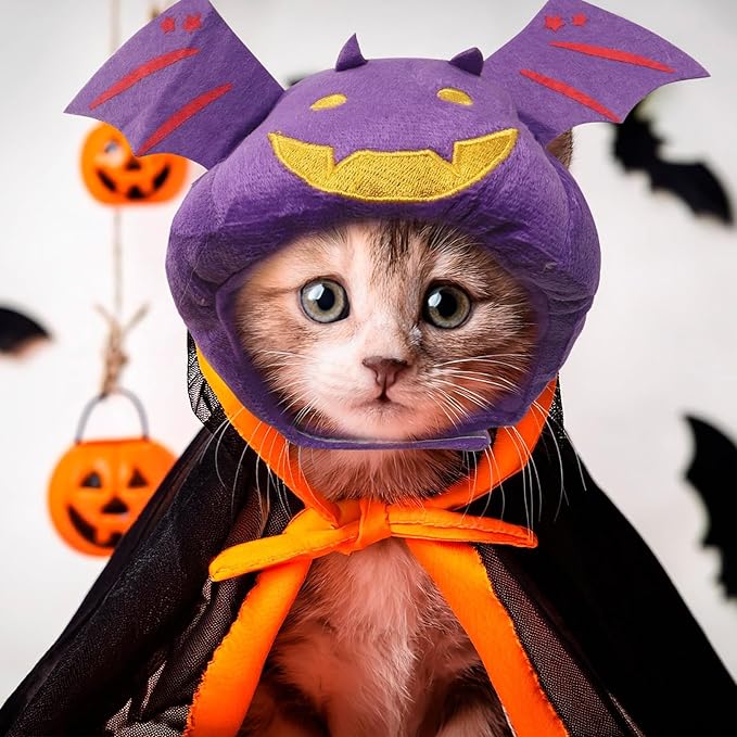 About This Unique Bat Design: The purple bat cap with wings is a creative cat halloween costume that makes pets... Read more