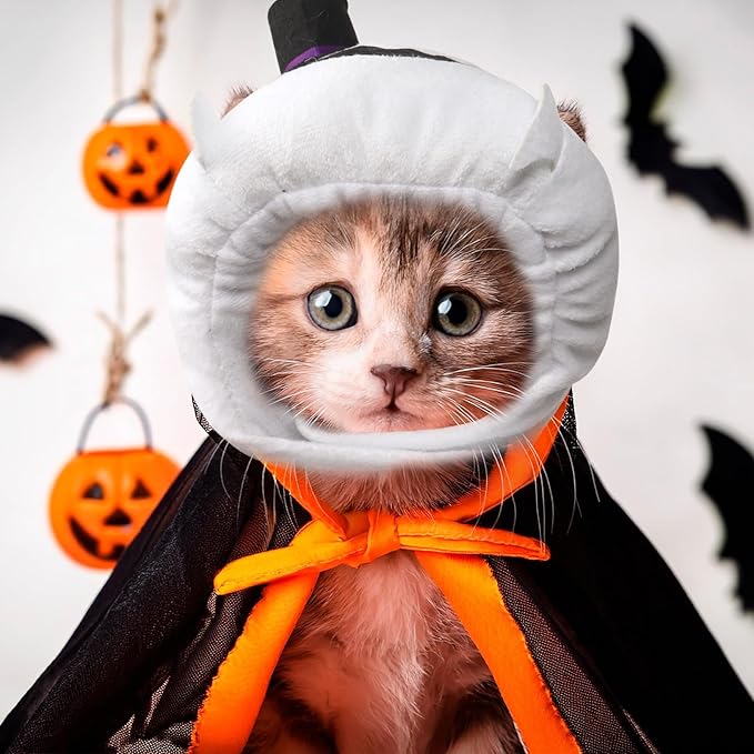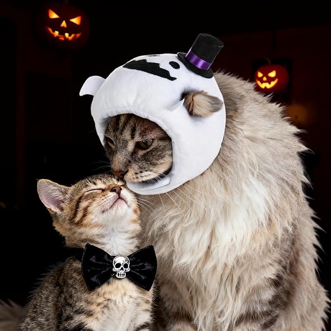 Cat Halloween Costumes Halloween Ghost Hat for Dogs Cats Adjustable Cute White Ghost Cap with Hat Festival Pet Head Dress Up Accessories for Halloween Puppy Kitten Cosplay Costume Gifts