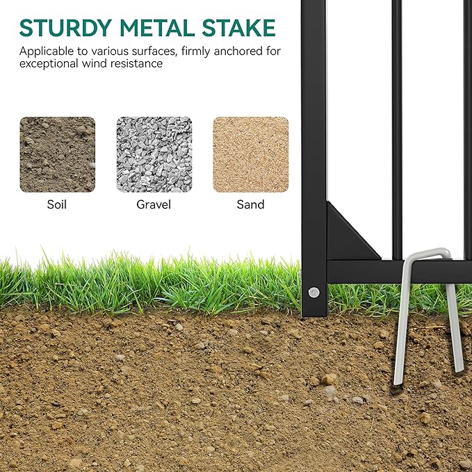 - Simple Setup & Cleanup: Easily assemble the dog fence outside using detailed instructions and no complex tools; The raised legs of the dog run help prevent dirt buildup, creating a fresh, comfy space for your pet to relax after muddy play sessions