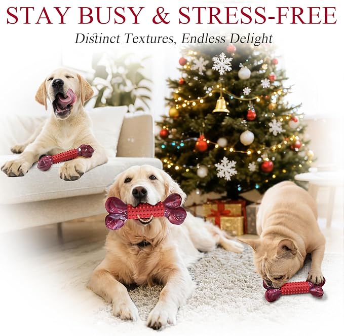 Apasiri Dog Toys for Aggressive Chewers with Beef Flavor: 4-Pack Dog Bones for Large Dogs, 8" Chew Toys Long-Lasting, Tough Nylon & Rubber Dogs Toys