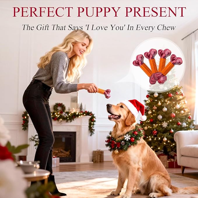 Apasiri Dog Toys for Aggressive Chewers Peanut Butter Flavored: 4-Pack Dog Bones for Large Dogs, 8" Chew Toys Long-Lasting, Tough Nylon & Rubber Dogs Toys