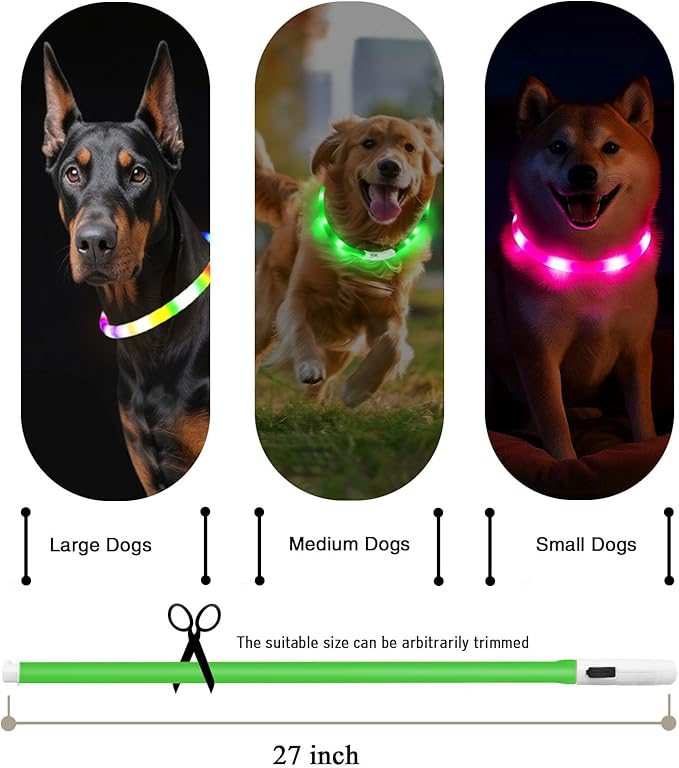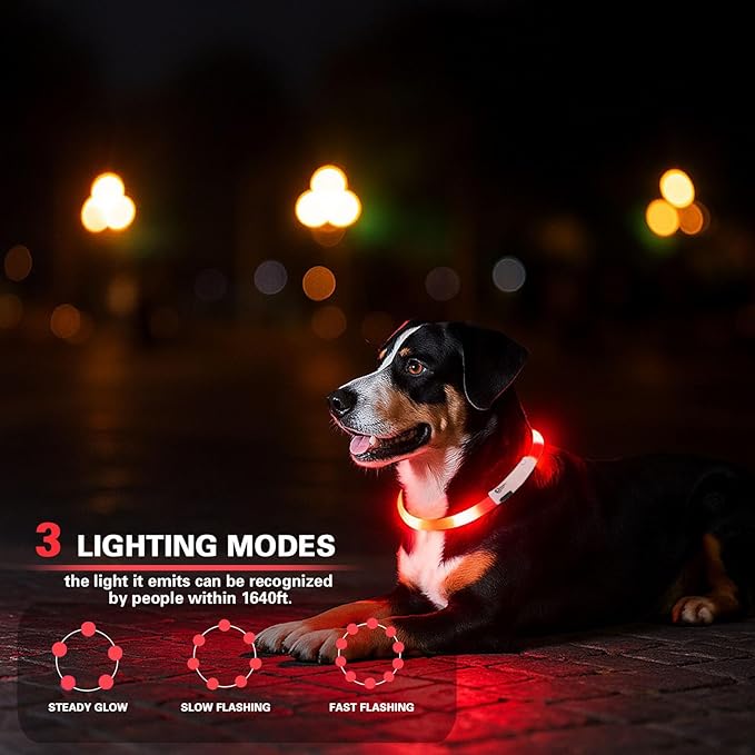 Light Up Dog Collar, Rechargeable Glowing Dog Collar, Light Dog Collar for Night Walking with 1640 FT of Visibility - Brightest LED Dog Collar Light, 3 Flashing Modes, Keeps Your Pets Safe in The Dark