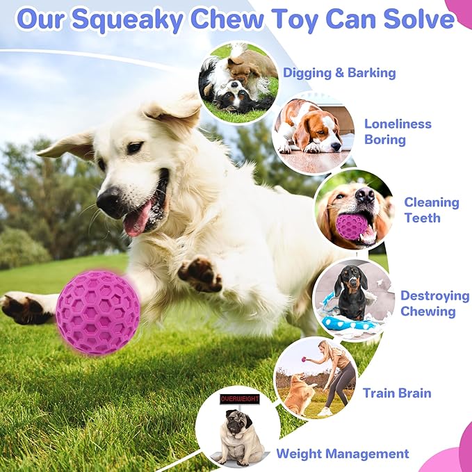 Interactive Squeaky Dog Balls, Dog Toys for Aggressive Chewers Large Breed for Relieving Anxiety, Tough Dog Chew Toys Balls for Aggressive Chewers, Outdoor Squeaky Cognitive Dog Toys
