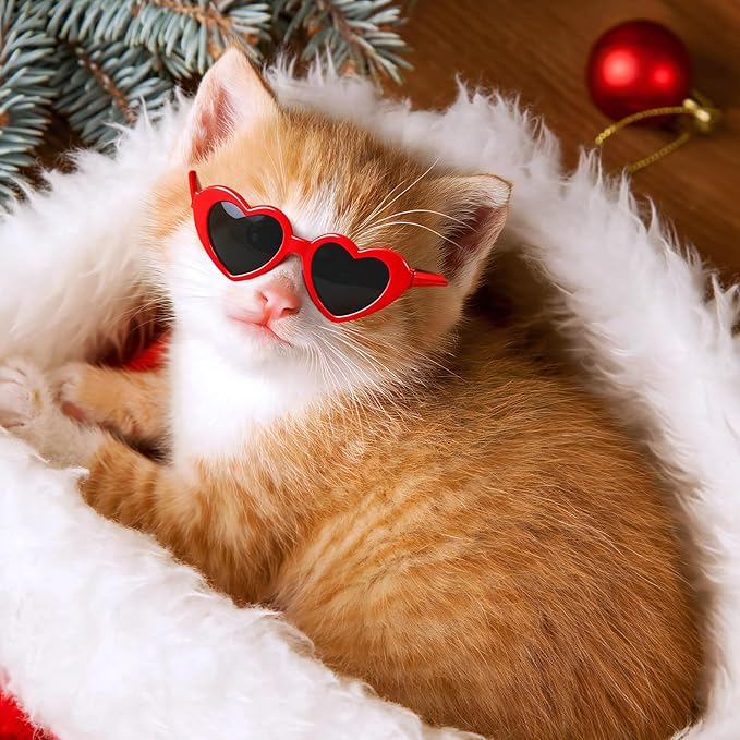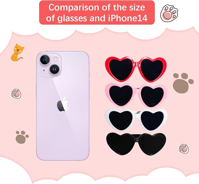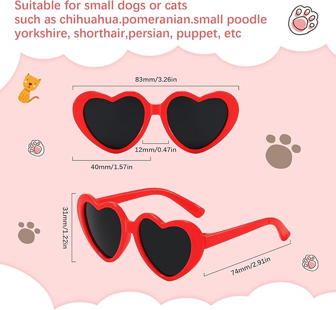 Pibupibu Retro Heart Small Dogs Cats Eye Wear Party Favors Pet Sunglasses Set Cute Funny Cosplay Dolls Costume Photo Props