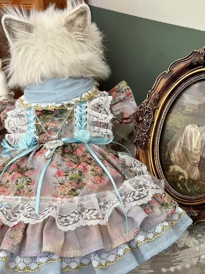 Fashion Sweet Puppy Dog Lace Princess Dress for EXTRAL Small and Small Dog C-Blue X-Small