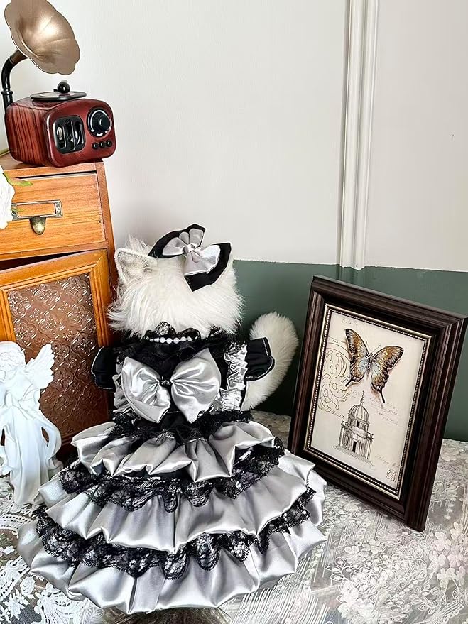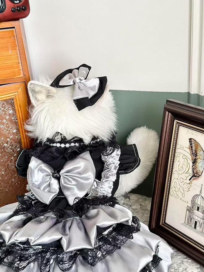 Fashion Sweet Puppy Dog Lace Princess Dress for EXTRAL Small and Small Dog C-Black X-Small