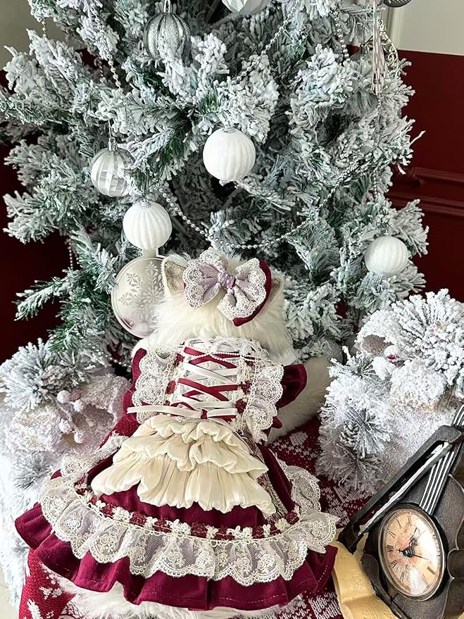 Fashion Sweet Puppy Dog Lace Princess Dress for EXTRAL Small and Small Dog B-WineRed Medium
