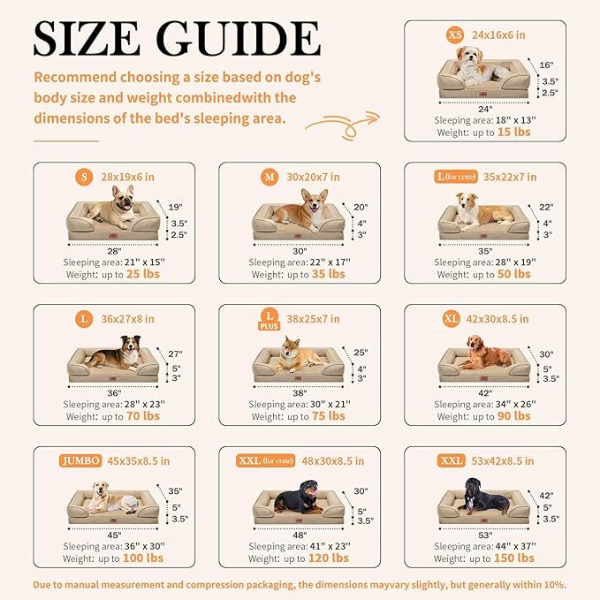 Comfort Expression Orthopedic Dog Bed for Medium Dogs 30x20 Inch, Waterproof Egg Crate Foam Medium Pet Bed with Removable Bolsters, Dog Couch with Washable Cover & Non-Slip Bottom, Light Brown