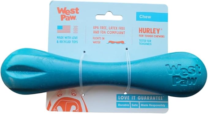 WEST PAW Hurley Dog Bone Chew Toy for Tough Chewers- Safe and Durable Fetch and Chew Toy for Dogs- Dishwasher Safe, Lightweight, Floatable, Made in USA - for Small Dogs - River Blue, Large